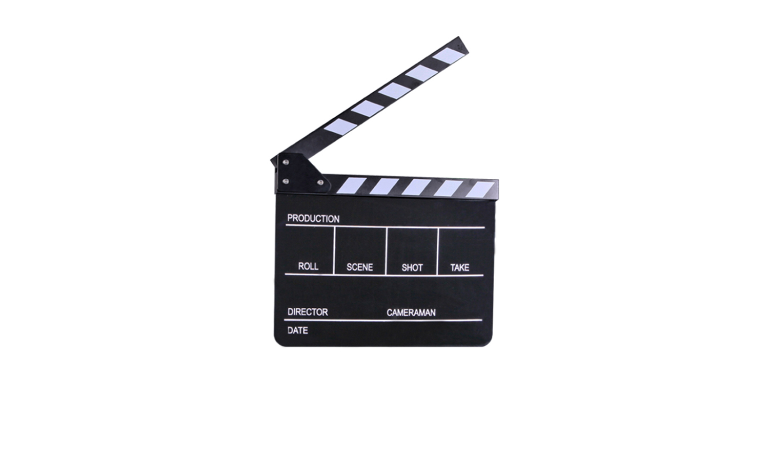 The clapper sticks are made of solid wood for a strong audio spike, and they feature a magnetic lock to keep them closed when not in use. The full slate measures 9.3 x 11" and features engraved text and lines.