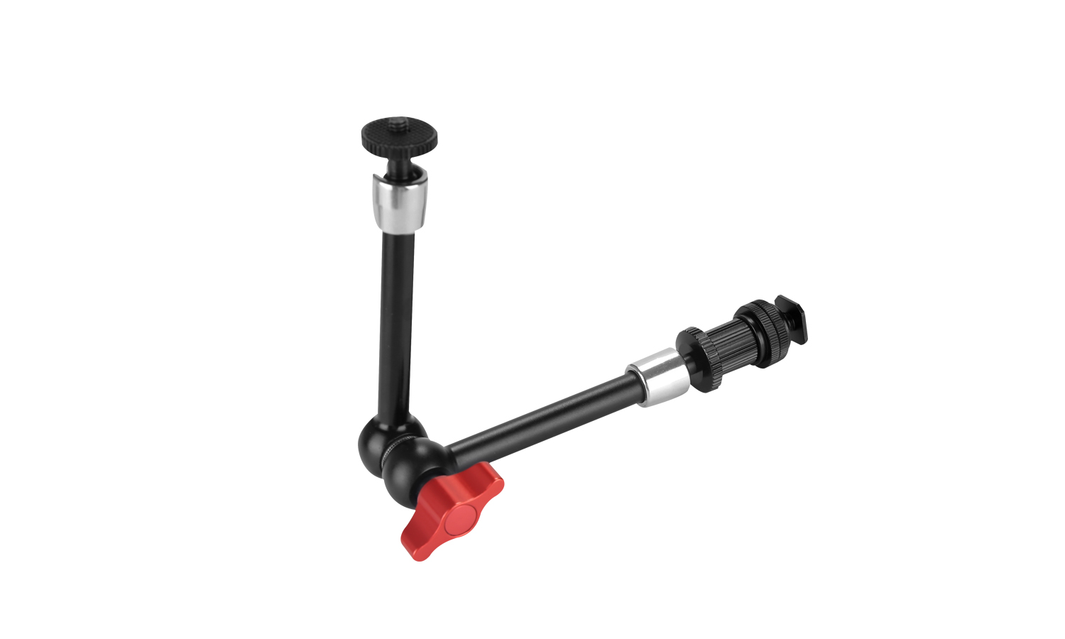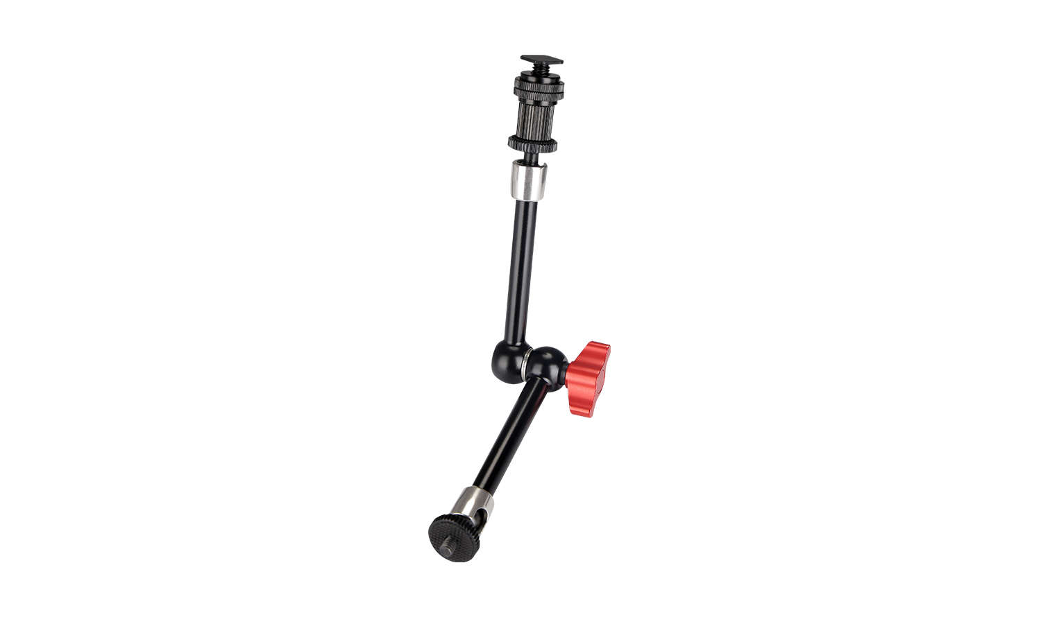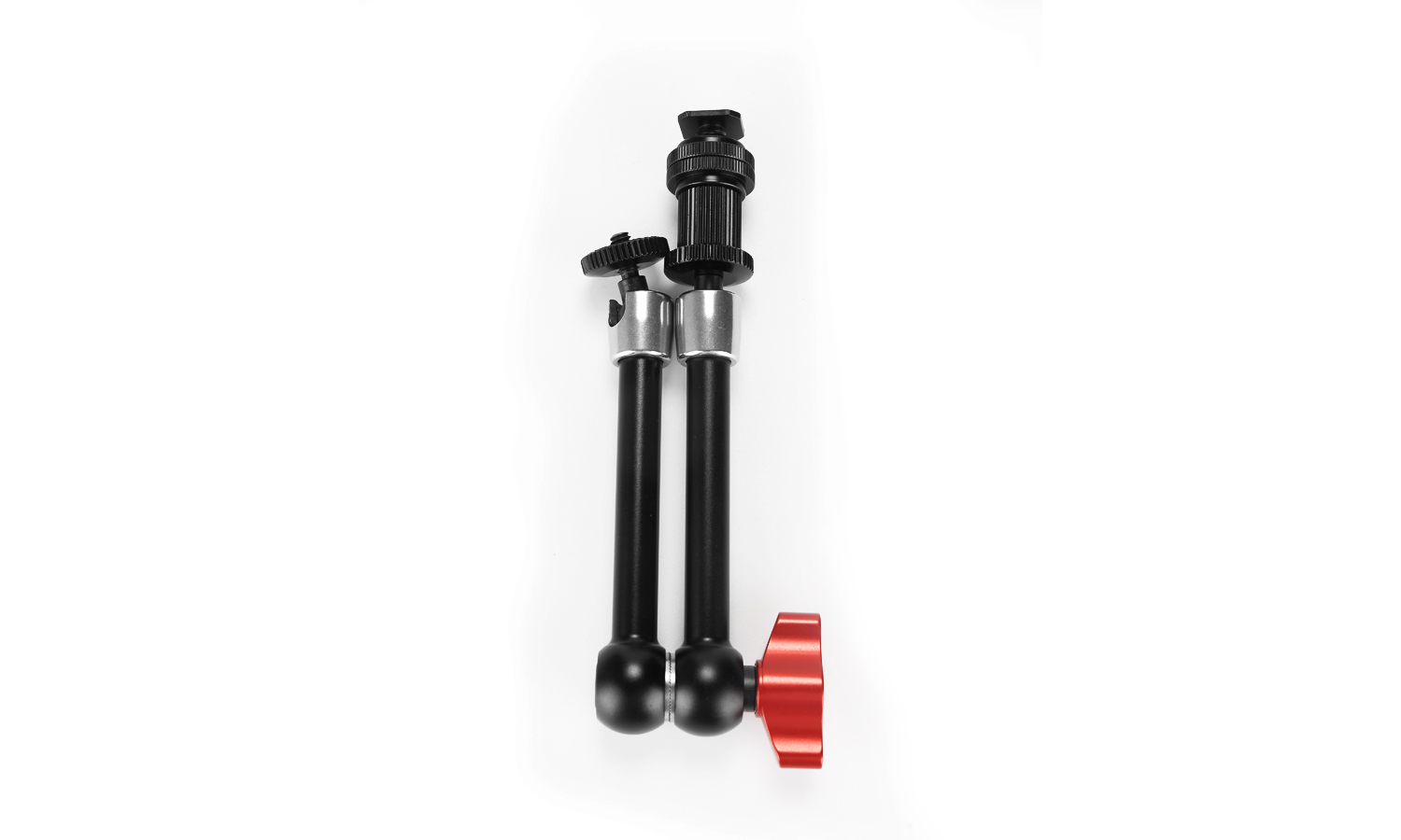 It features 1/4"-20 threads on both sides as well as a center wing nut with locking teeth for increased holding capacity.