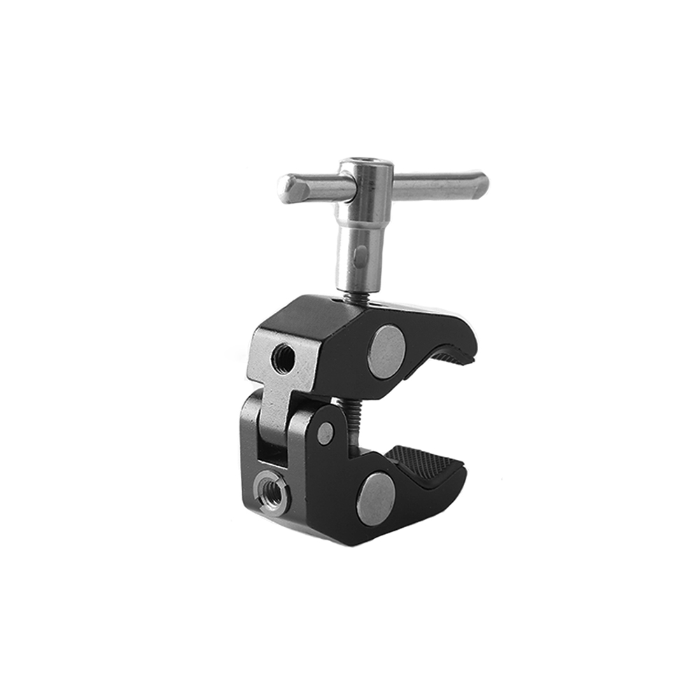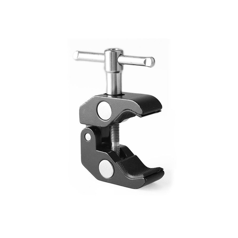 Overview This clamp securely attaches to different tubes between 1/2"-1-1/2" with a simple locking screw. It features two standard screw holes (1/4"-20 & 3/8"-16).