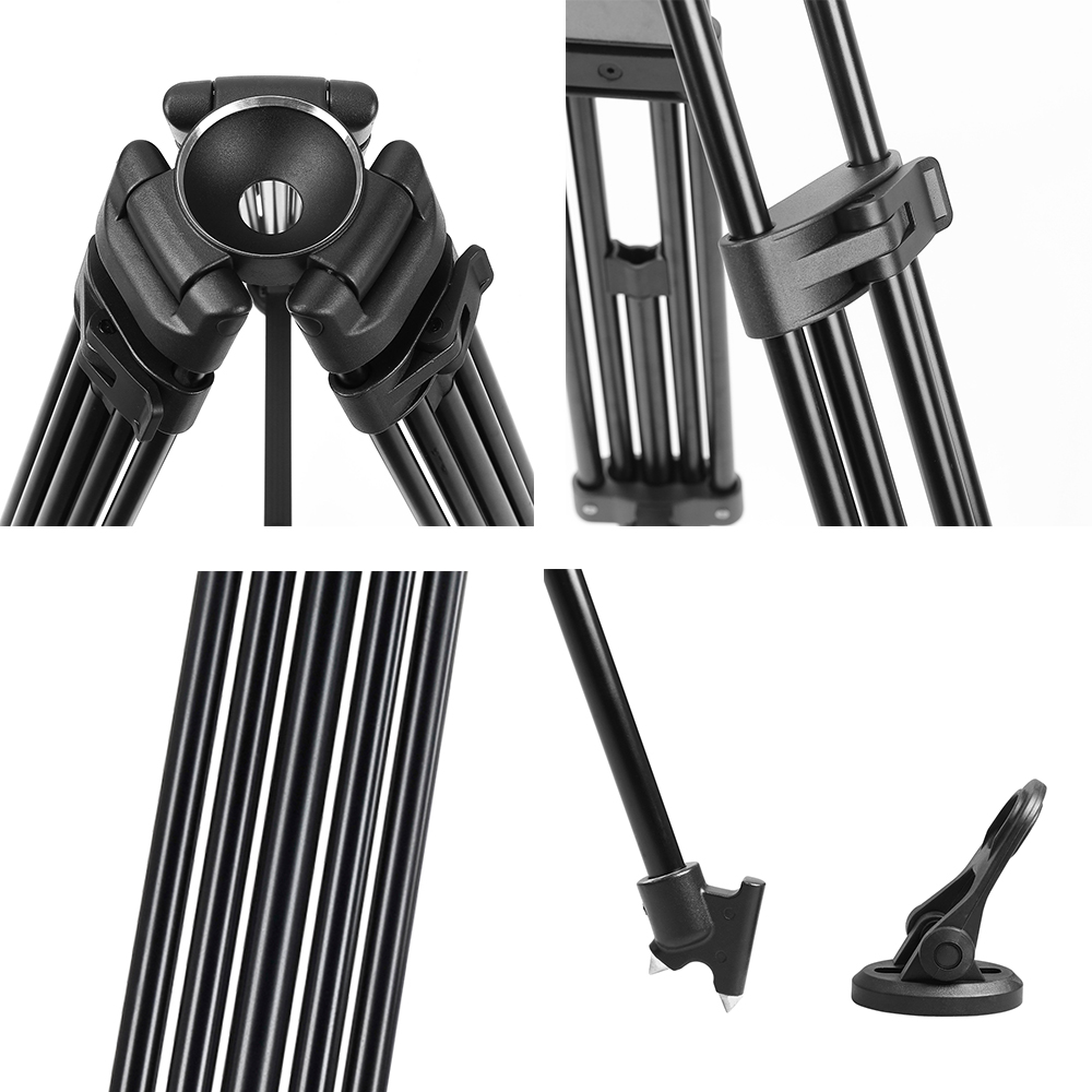 Overview The AXRTEC VT65 professional video tripod system is designed for HDSLR and interchangeable lens camera. The fluid head features fixed pan drag, adjustable tilt drag and fixed counterbalance. Universal 501PL sliding plate make it convenient to put the camera on other heads which with same plate. The 2-stage tripod leg with a built-in 75mm bowl. Flip locking system provides quick locking and release for adjusting the height. Middle spreader provides enhanced stability by holding the tripod legs in locked position. The system offers a height range from 76.5-160cm and folds down to 31.7inch for storage inside the included padded carrying case.